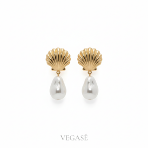Maris Gold Renk Çift Yüz Midye Klipsli Küpe, ön ve arka midye formu ile kulağı zarif şekilde sararak güçlü ve sofistike bir görünüm sunar.