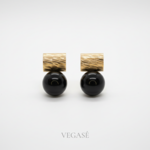 Noir Aura Küpe, altın tonlu dokulu metal ve siyah küre detayının modern uyumuyla stilinize güçlü ve sofistike bir dokunuş katar.