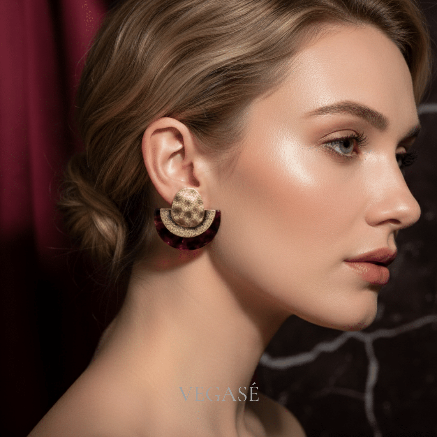Gold dokusu ve derin bordo tonlarıyla Artemis Küpe, güçlü duruşun en şık hali.