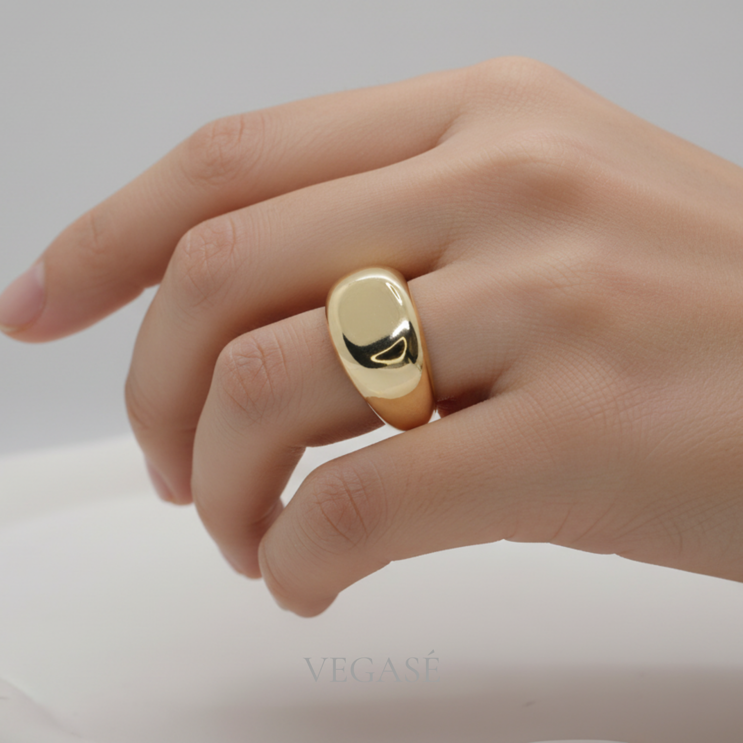 Aurelia Gold Bombeli Yüzük, zamansız tasarımı ve güçlü formuyla minimal şıklığı modern bir yorumla buluşturur. Pürüzsüz, bombeli üst yüzeyi ışığı kusursuz şekilde yansıtarak dikkat çekici bir parlaklık sunar. Kalın ve dolgun formu sayesinde parmakta iddialı bir duruş sergilerken, sade tasarımı sayesinde hem günlük kombinlerle hem de özel davet stilleriyle rahatlıkla uyum sağlar.
