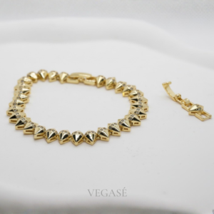 Bella Gold Bileklik, altın tonlu modern zincir formu ile derin siyah taşların güçlü kontrastını bir araya getirerek zarif ve dikkat çekici bir stil sunar. Yan yana dizilmiş parlak siyah taş detayları bilek üzerinde dengeli ve estetik bir görünüm oluştururken, gold yüzeyin ışıltısı tasarıma sofistike bir hava katar. Günlük kombinlerde şıklığı tamamlayan, özel davetlerde ise güçlü bir aksesuar etkisi yaratan zamansız bir modeldir. Minimal tasarım çizgisi sayesinde tek başına kullanıldığında bile stilinizi ön plana çıkarır.
