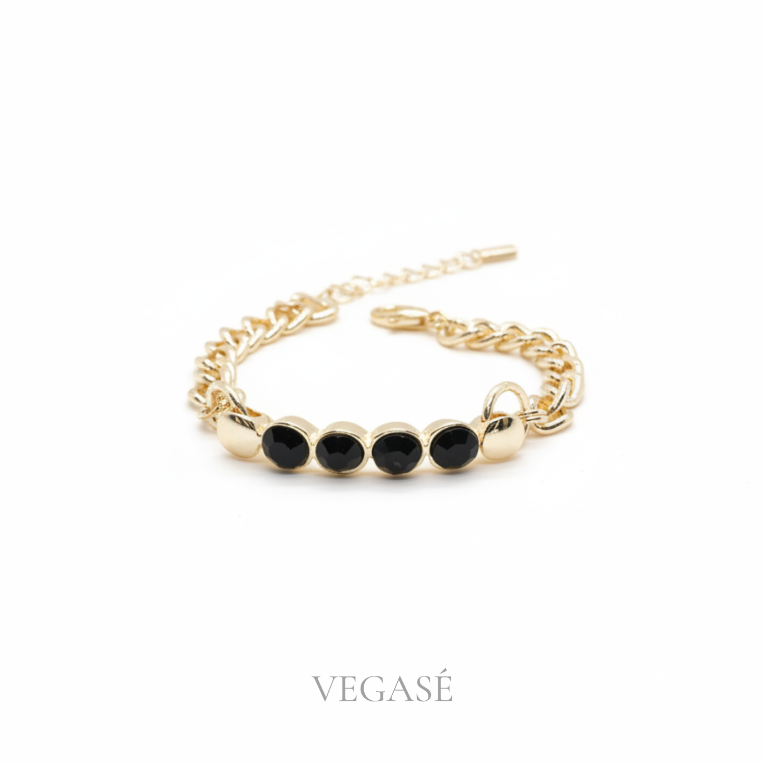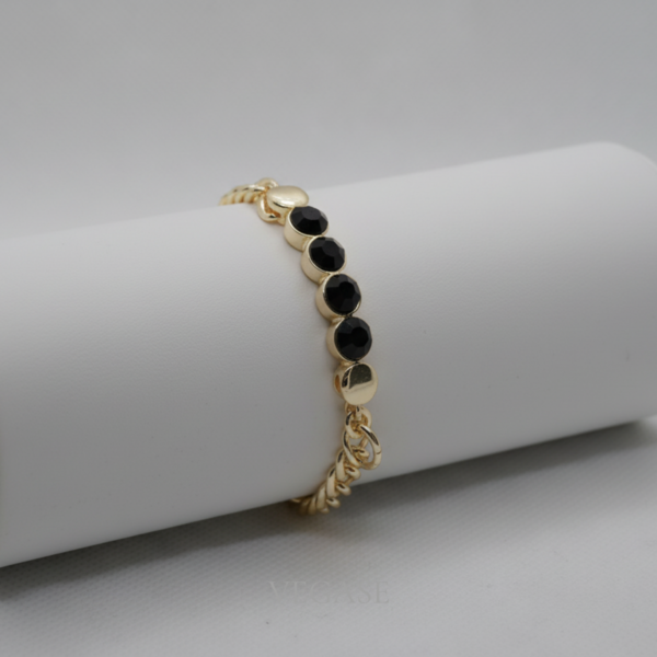 Altın ton ve siyah taş uyumuyla modern, güçlü ve zamansız bir bileklik.