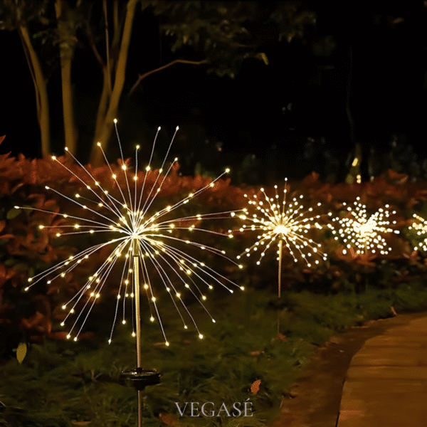 Havai Fişek Dekorlu Solar Led Bahçe Lambası, bahçe, balkon, teras ve çim alanlarda dekoratif bir ışıklandırma deneyimi sunmak için özel olarak tasarlanmıştır. Esnek metal telleri sayesinde havai fişek, çiçek veya yıldız formunda kişiselleştirilebilir ve her mekâna modern bir görsellik katar.
