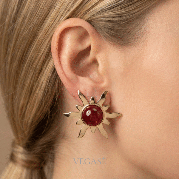 Heliora Küpe – Bordo Taşlı Güneş Küpe