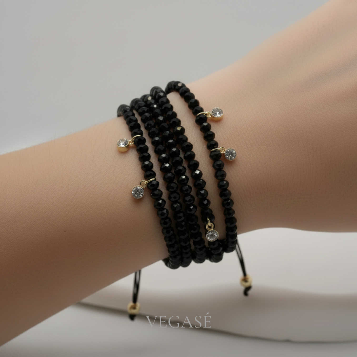 Midnight Glow Çoklu Siyah Boncuk Bileklik