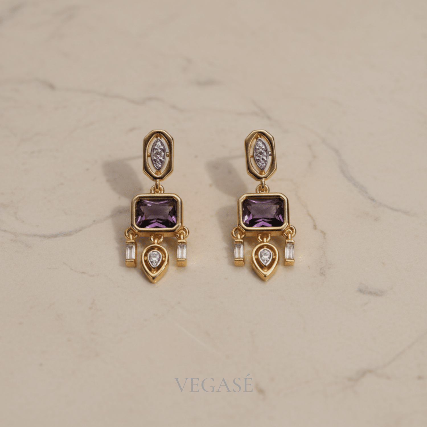 Noctéra Taşlı Küpe, gece tonlarından ilham alan koyu merkez taşı ve altın çerçeveli geometrik detaylarıyla sofistike bir zarafet sunar. Üst bölümdeki zarif taş yerleşimi, alt kısımdaki sallantılı çoklu form ile dengelenerek küpeye hareketli ve güçlü bir siluet kazandırır. Farklı kesimlerdeki taş detayları, ışığı her adımda farklı yansıtarak dikkat çekici bir ışıltı oluşturur.