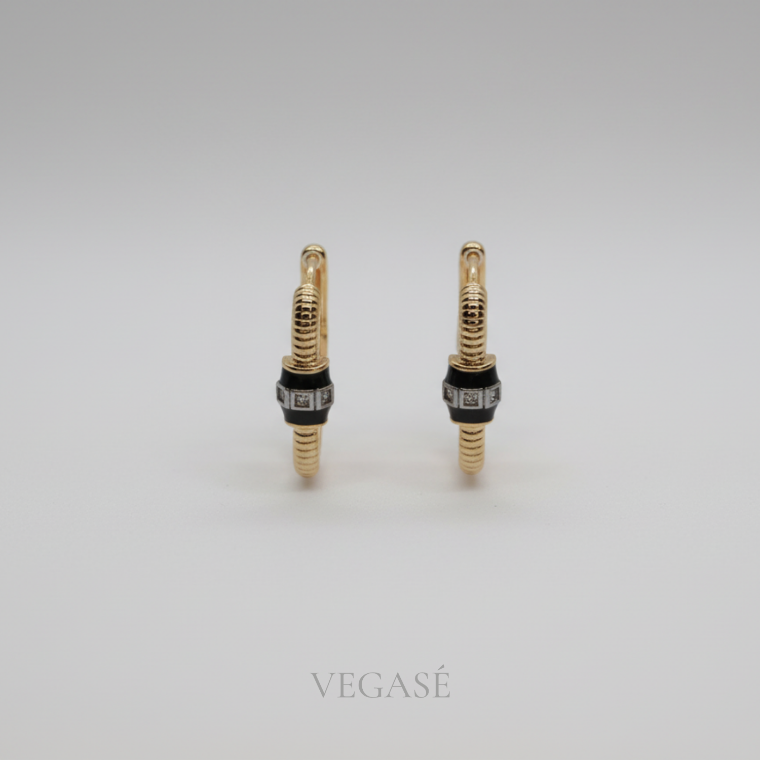 Noir Loop Gold Renk Küpe, altın tonlu halka formu ve siyah detaylı modern tasarımıyla stilinize güçlü ve sofistike bir dokunuş katar.