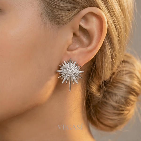 Taşlı Kuzey Yıldızı Küpe – Işıltılı Zirkon Taşlı Parlak Gümüş Renk