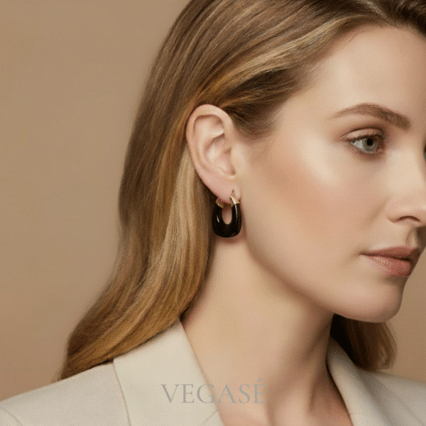 Modern çizgilerin zarafetiyle tasarlanan Vera Küpe, siyahın asaletiyle altın tonunun sıcaklığını bir araya getiriyor. Günlük stilinize sofistike bir dokunuş katmak için ideal.